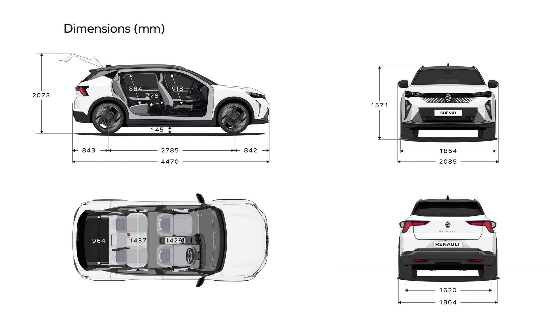 Scenic E-Tech electric leveres med to batterialternativer; 60 kWt/170 hk og 87 kWt/220 hk, som gir en rekkevidde på henholdsvis 430 km og 622 km.